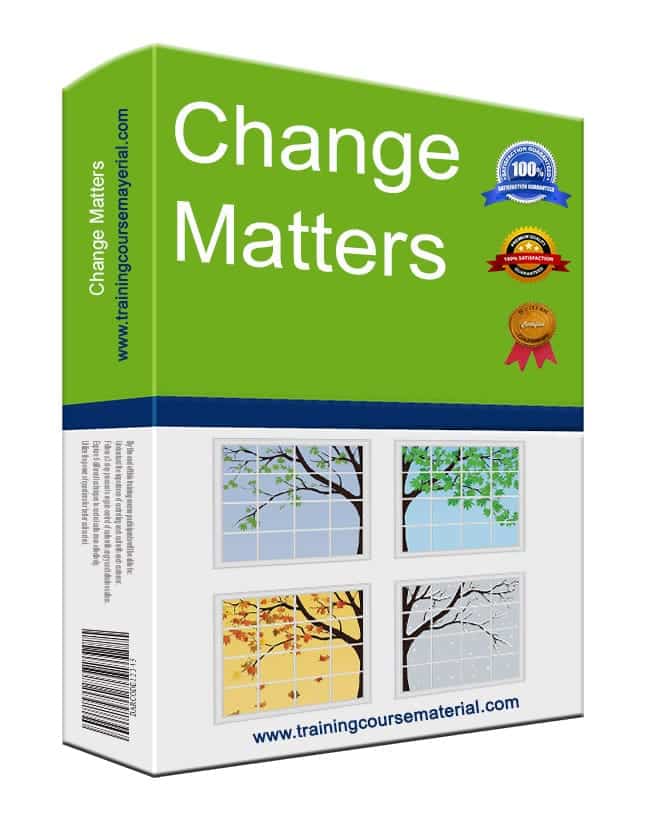 There are loads of books and training programs addressing organizational change. The different thing about this training program is that it focuses on personal reactions and emotions and what it actually feels like during a workplace change or a personal change. It provides you with a logical framework to assist you in gaining perspective on the change situation you are facing and its impact and helping you develop insight that will guide you through the transition.